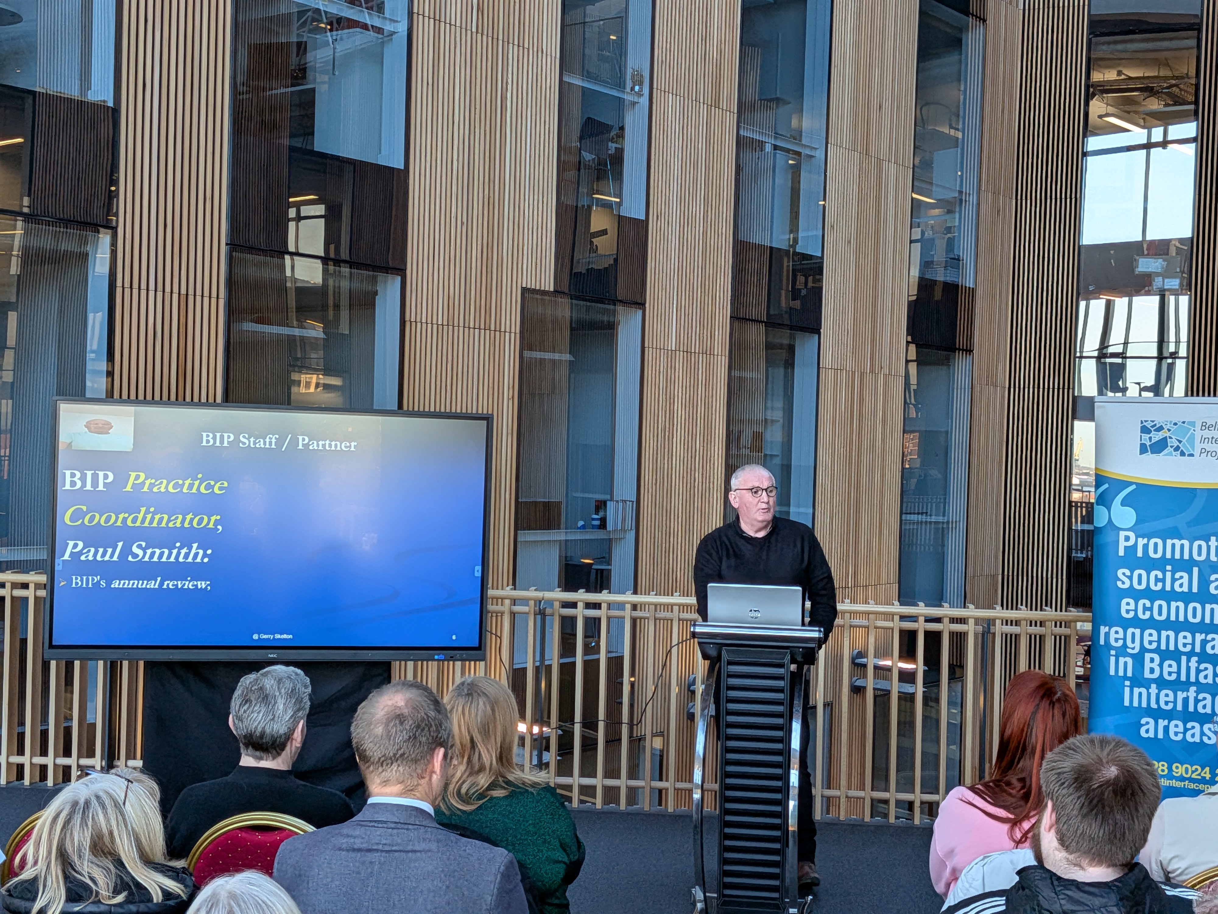 The event also featured contributions from several key voices within and alongside the organisation. Paul Smith spoke about the future direction of BIP, highlighting our ongoing impact in communities and the need to expand into areas such as research to strengthen and inform our work. Maria Morgan reflected on the importance of BIP’s role and the meaningful difference it has made within interface areas over the past 25 years.
