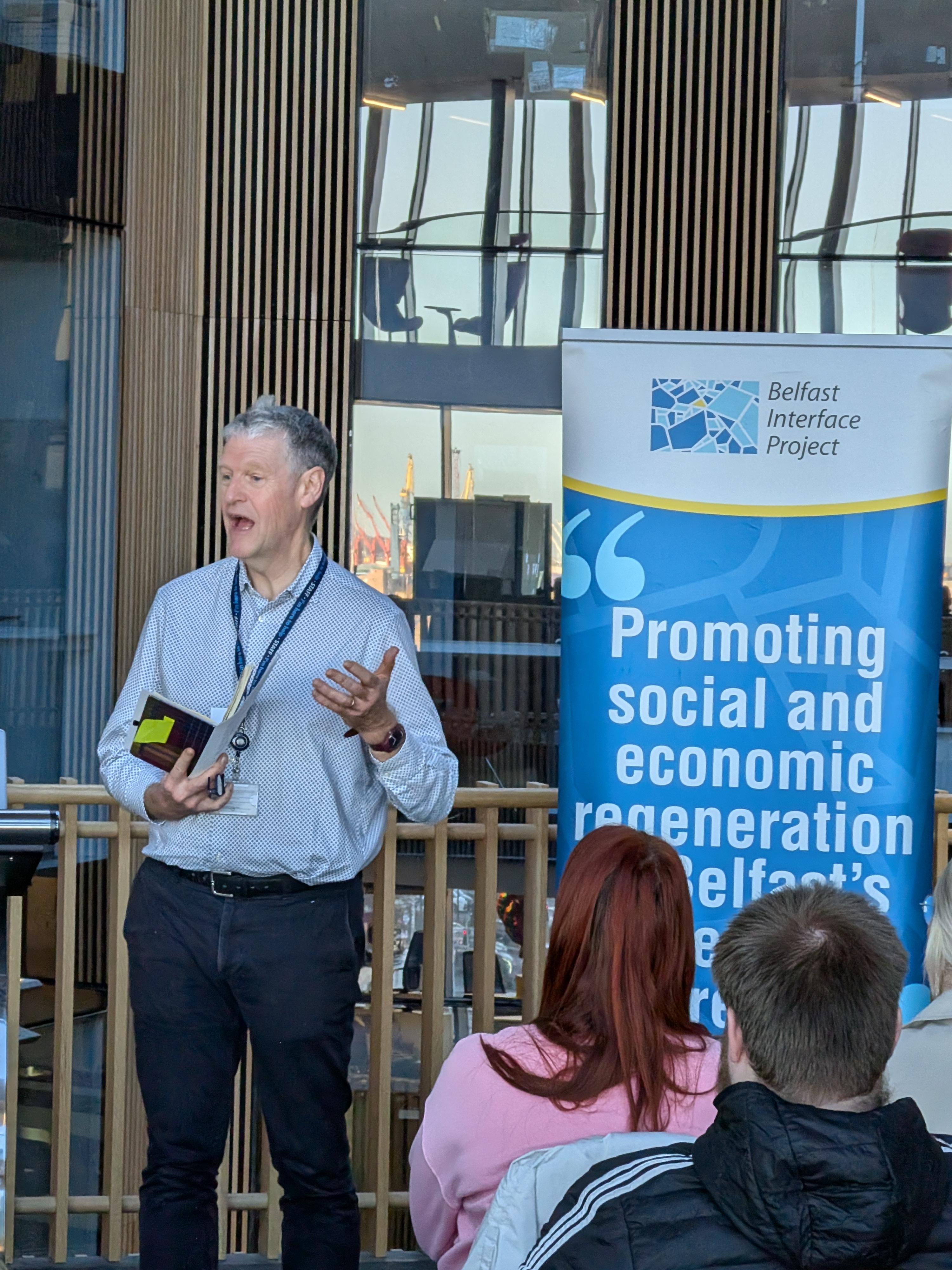 We were also delighted to hear from Professor Peter Bloom of the University of Essex, who spoke about the Shared Futures Platform, outlining the years of work behind its development and the positive impact it will have for interface communities, particularly for local stakeholders such as community and youth centres.